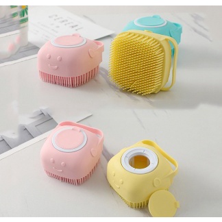 HYQ1594 Kit 2 Esponja De Silicone Para Banho Com Dispenser Shampoo / Sabonete Escova Crianças/ Adultos / Pets