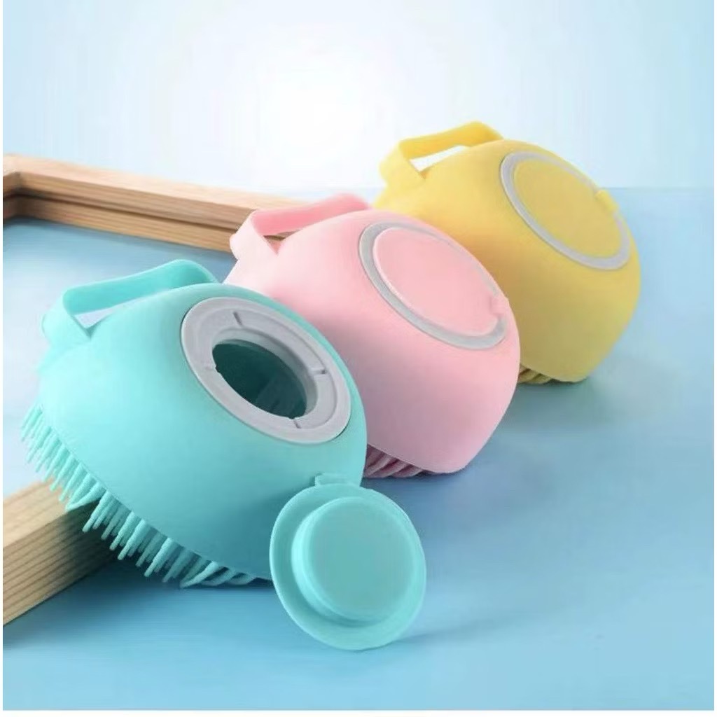 Kit De 2 Esponja De Silicone Para Banho Com Dispenser Shampoo Sabonete Escova Pet Criança Adulto Cor Aleatória