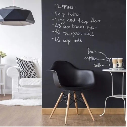 Papel Adesivo De Parede Tipo Lousa Quadro Negro Preto Fosco 2 metros Com Giz