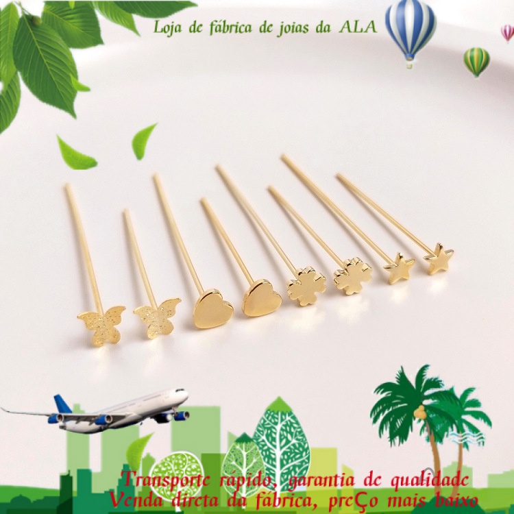 💖Joias DIY acessórios💖Acessórios de preservação de cor banhados a ouro 14K em forma de agulha T estrela de cinco pontas em forma de coração borboleta pequena flor agulha plana DIY material de ornamentos feitos à mão [Agulha/Colar Pulseira Brincos]