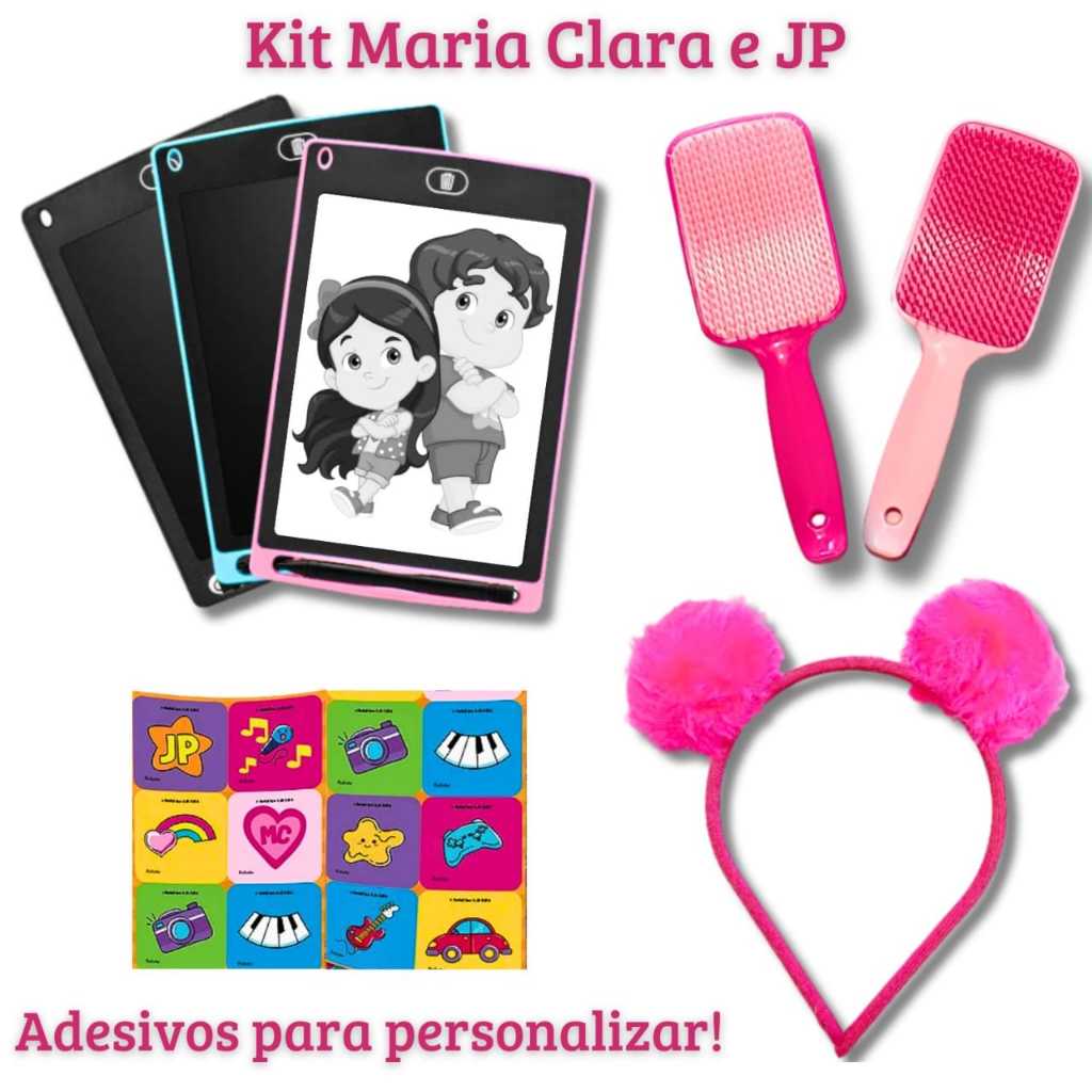Kit Férias Maria Clara E Jp Lousa Mágica Escova Raquete e Arquinho Pompom com Adesivos Para Personalizar