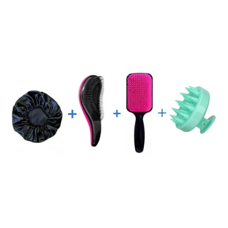 Kit 4 Massageador para cabelo+Escova Raquete + Escova Magica +Touca Cetim