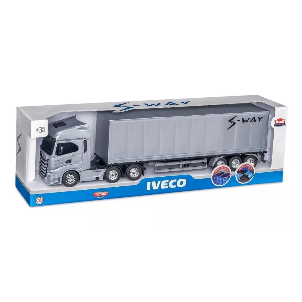 S-Way Caminhão Baú Iveco S-Way Brinquedo Infantil Carrinhos Miniatura Carreta - Usual Brinquedos