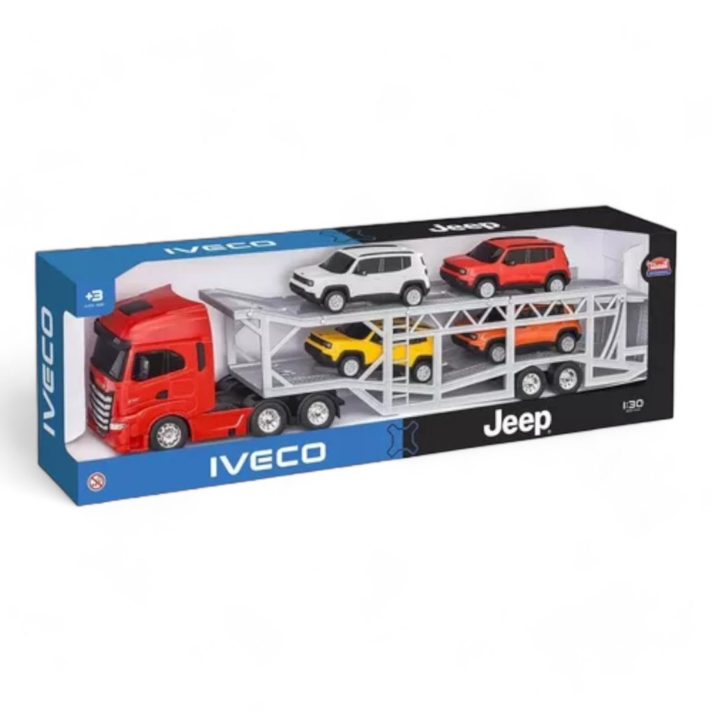 Caminhão Brinquedo miniatura Iveco S-way Cegonha Jeep Renegade escala 1:30 Com 4 Jeep Renegade - Usual Briquedos