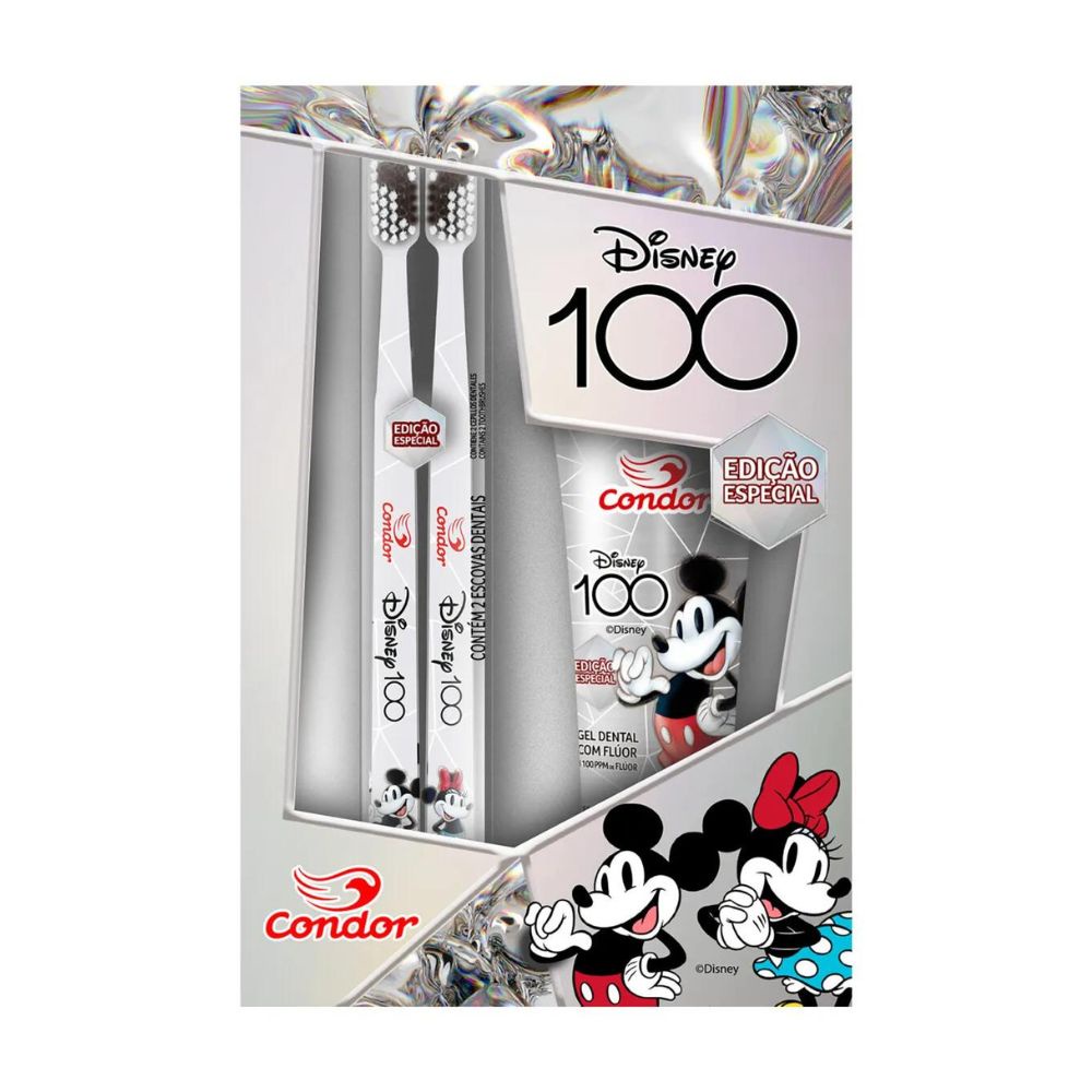 Kit Disney 100 Anos - Gel Dental + 2 Escovas Dentais Condor
