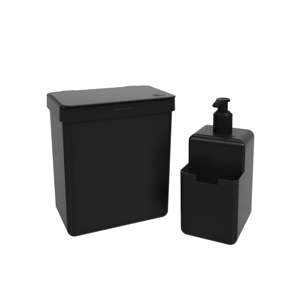 Kit Cozinha 3 Peças Lixeira Pia 5 Litros + Porta Detergente Sabão + Rodinho de Pia Preto