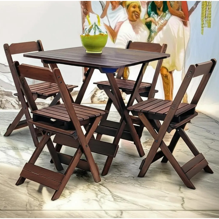 Jogo de Mesa com 4 Cadeiras de Madeira Dobrável 70x70 Ideal para Bar e Restaurante - Imbuia