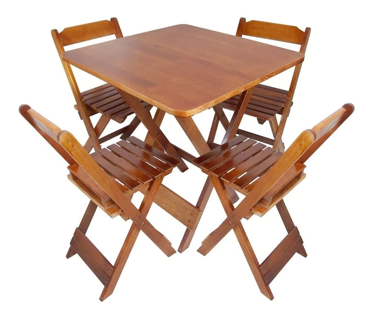 Jogo De Mesa Dobrável 70x70 C/ 4 Cadeiras Madeira Maciça Envio Imediato