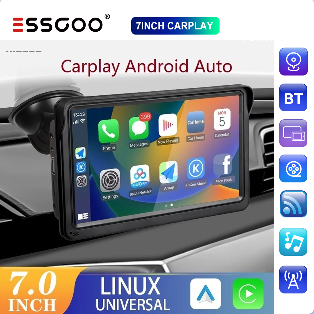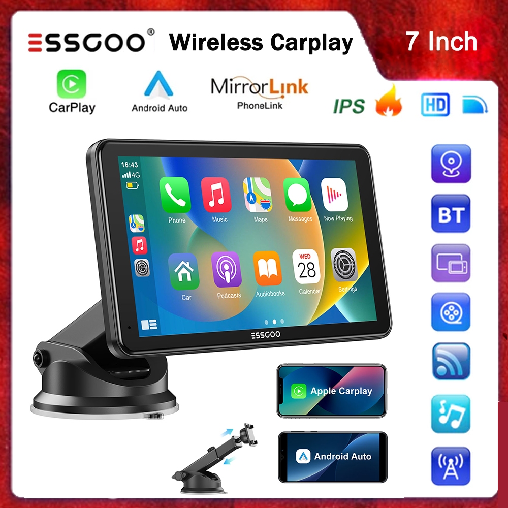 ESSGOO 7 Polegadas Portátil Car Player Sem Fio Carplay Android-Auto Multimídia FHD BT IPS 2.5D Tela Sensível Ao Toque Rá