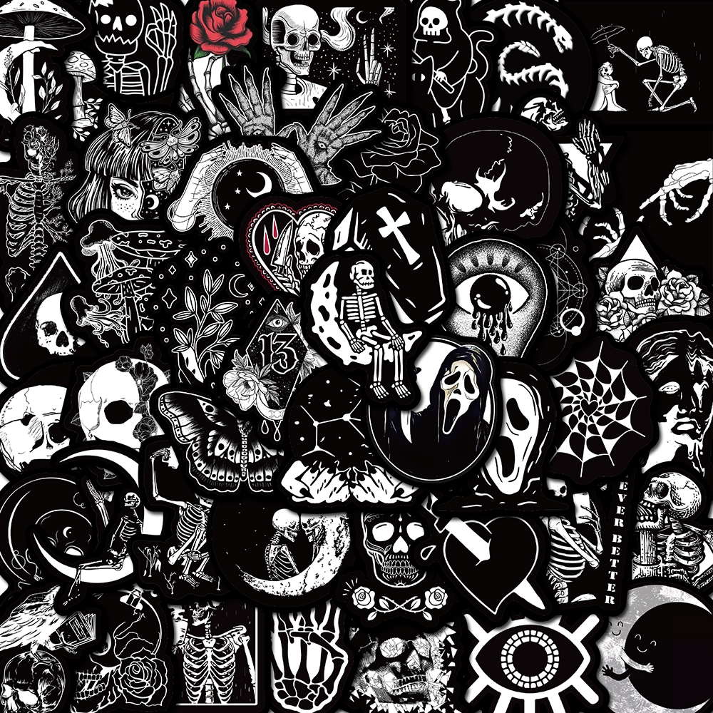 1000/50PCS Horror Preto E Branco Gótico Punk Estilo À Prova D'água Adesivos De Grafite Para Capacete De Bicicleta Decalques De Lápis De Conta Manual LanLanStickersWorld