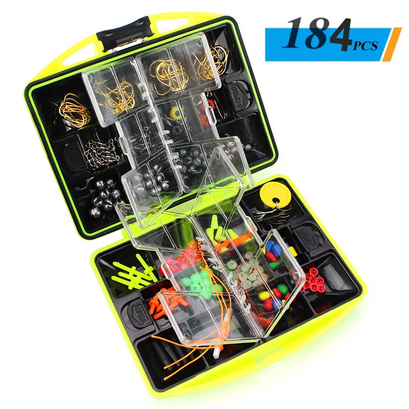 184pcs 24 Tipos De Acessórios Portáteis De Pesca De Rocha Conjunto Fundição De Surf Caixa De Iscas Macias Giratória De Anzóis De Chumbo Kit De Ferramentas