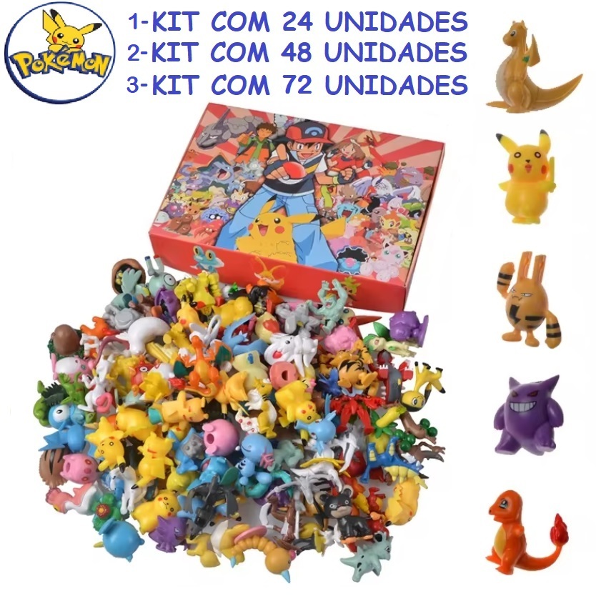 Kit 24, 48 ou 72 Pokémon Pikachu Sortidos Bonecos Miniatura Brinquedo Figura Anime Colecionável