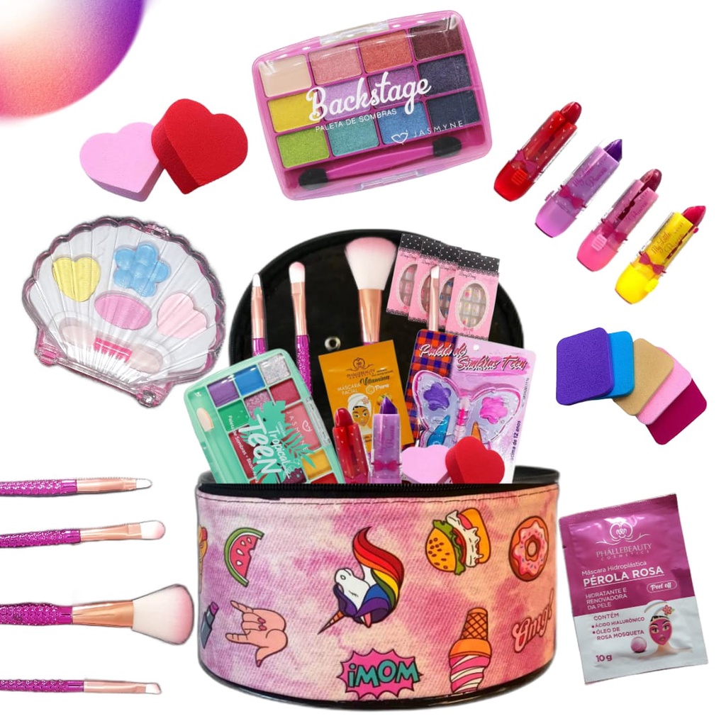 Kit de Maquiagem Infantil para Crianças Maleta Completa e Reposição de Maquiagem Infantil