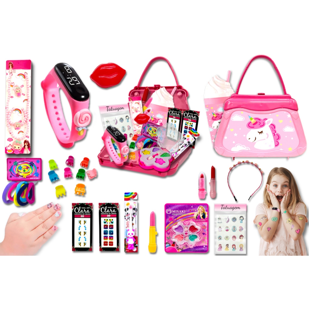 Kit De Maquiagem Infantil + Maleta + Bolsinha Infantil Linda
