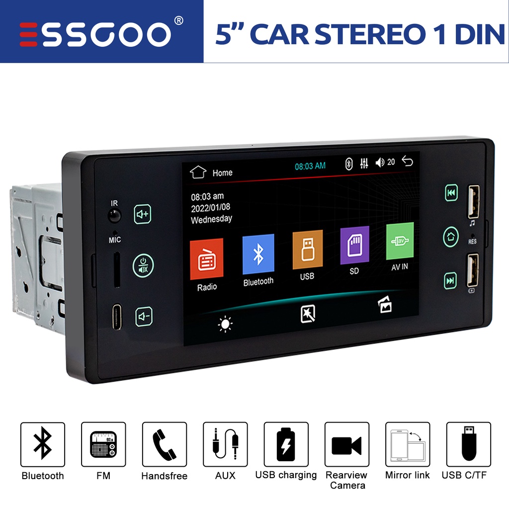ESSGOO 5 Polegada MP5 Player 1 Din Rádio Estéreo Do Carro IPS Tela De Toque Sistema Wince BT/TF/FM/USB/Mirrorlink