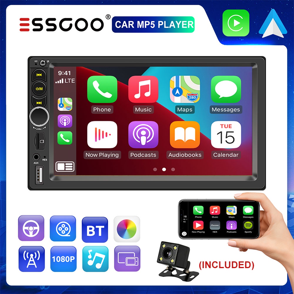 ESSGOO 2 Din Carplay 7 Polegada Multimídia MP5 Player Rádio Para Carro Bluetooth FM Receptor Tela De Toque HD USB/FM/TF