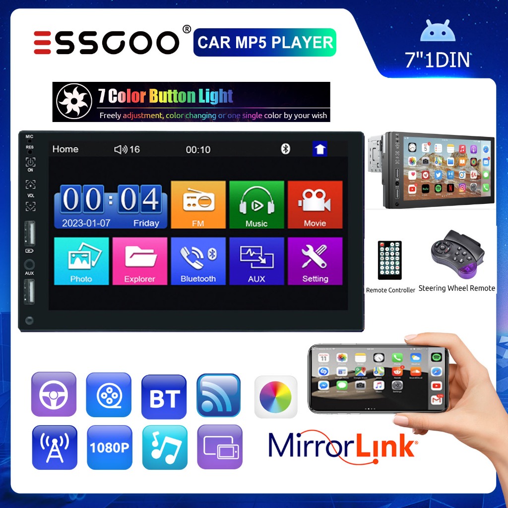 ESSGOO 1 din Carro MP5 Player Rádio 7 Polegada Carplay & Android Auto 2 Tela De Toque Espelho Link Multimídia Bluetooth