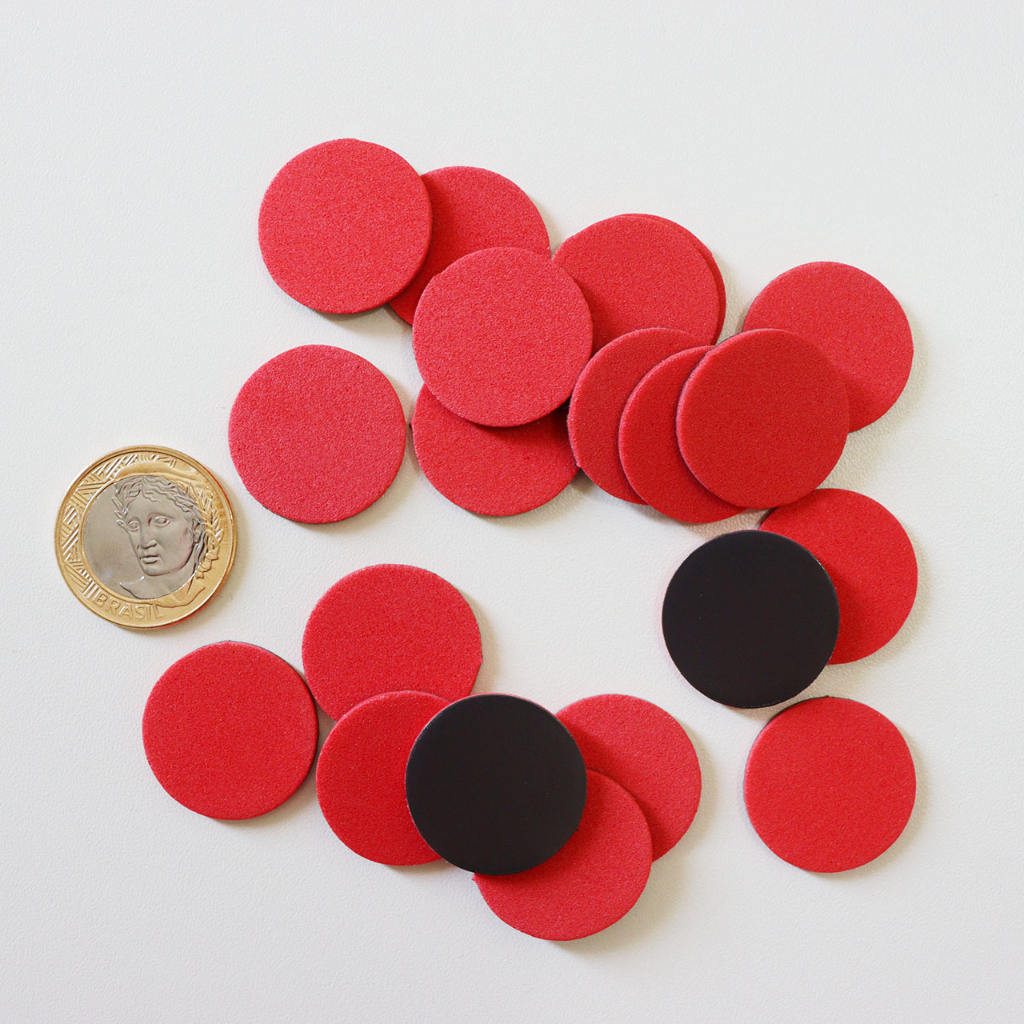 Pacote Kit 20 Fichas EVA imantadas íma 25mm 2,5cm p/ lousa magnética geladeira escritório atividades pedagógicas