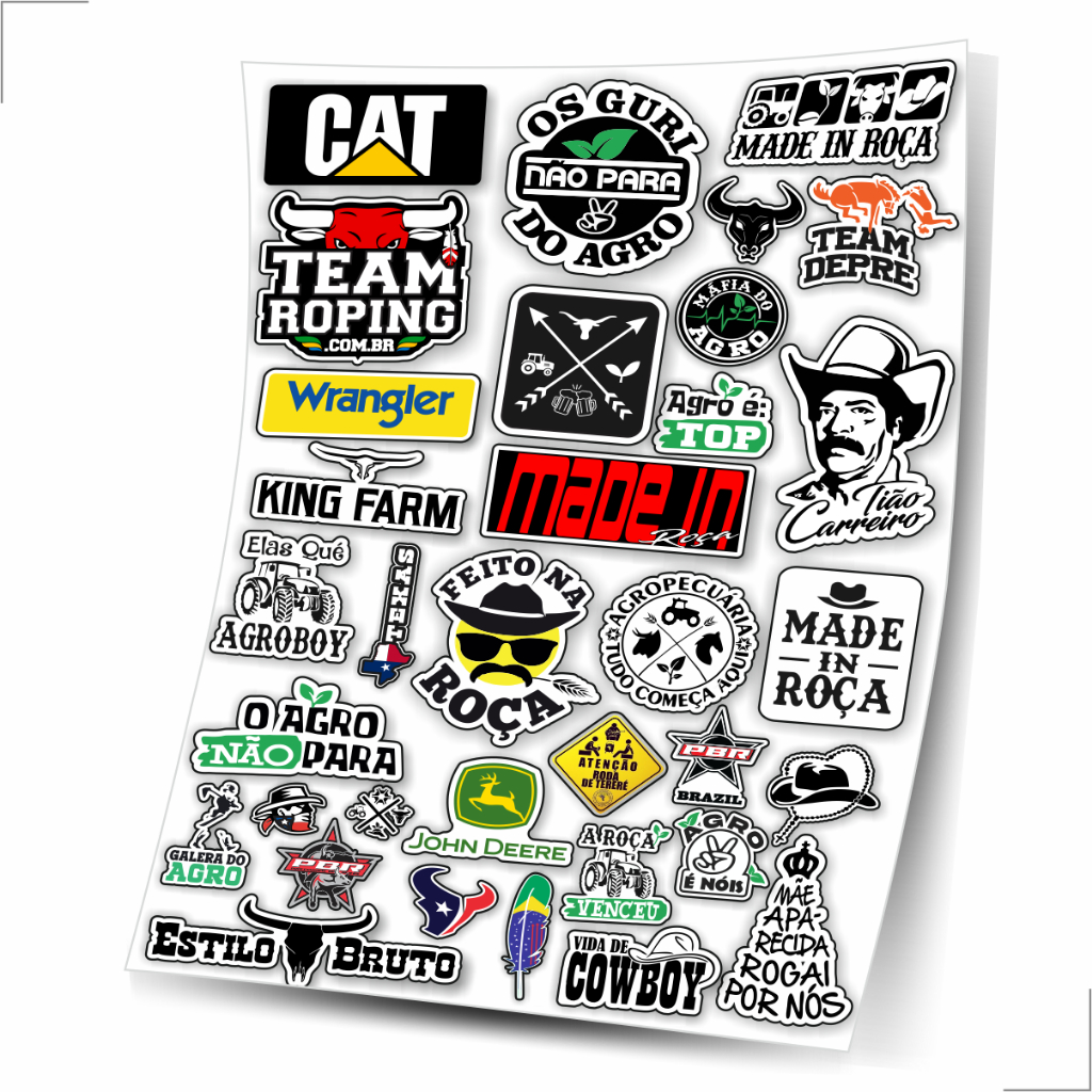 Cartela Adesivos Agro Cowboy Country Copo Térmico Garrafa Tereré Caminhonete