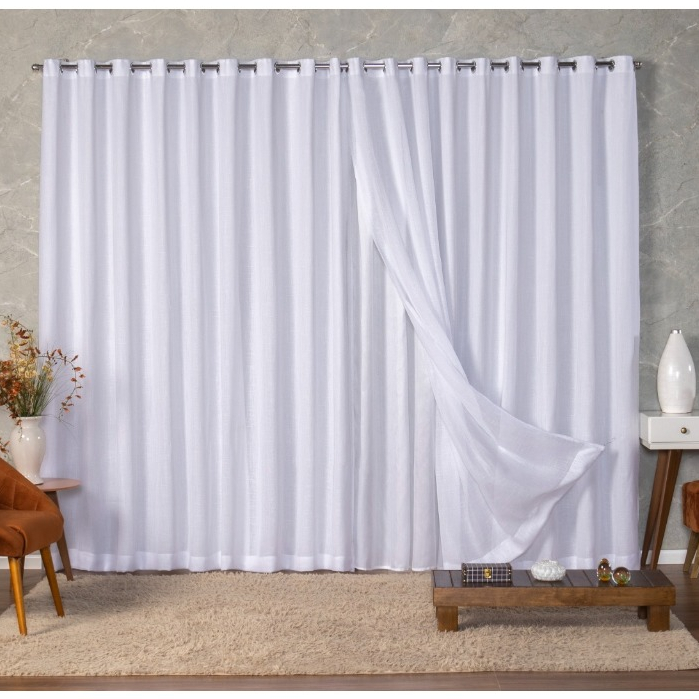Cortina Voil Gaze de Linho Com Forro Blackout 3,00 x 2,80 Tecido Grosso Original