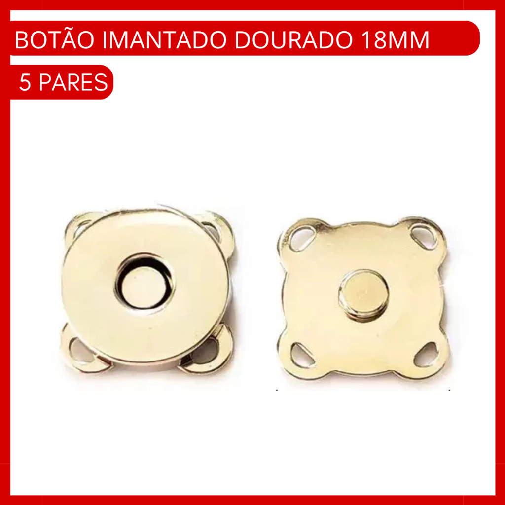Kit 5 Botões Imantado Magnético Fecho P/ Bolsa cor Dourado 18mm Imã