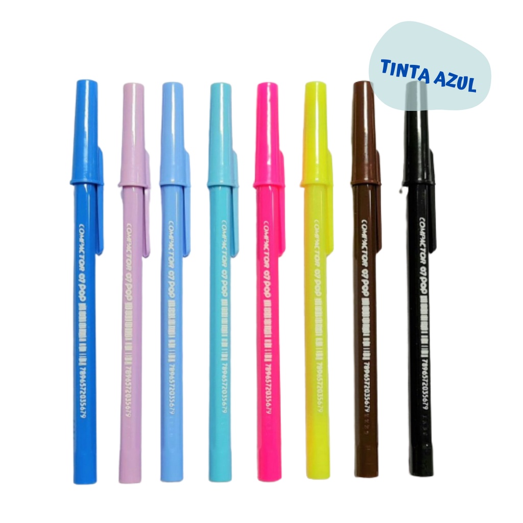 Caneta Pop Compactor Esferográfica 0.7mm Ponta Fina Tinta Azul