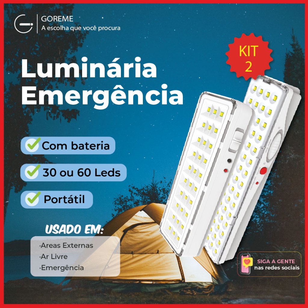 Kit 2 Luminária Emergência Lâmpada 30 ou 60 Leds Recarregável Bivolt Luz Branca