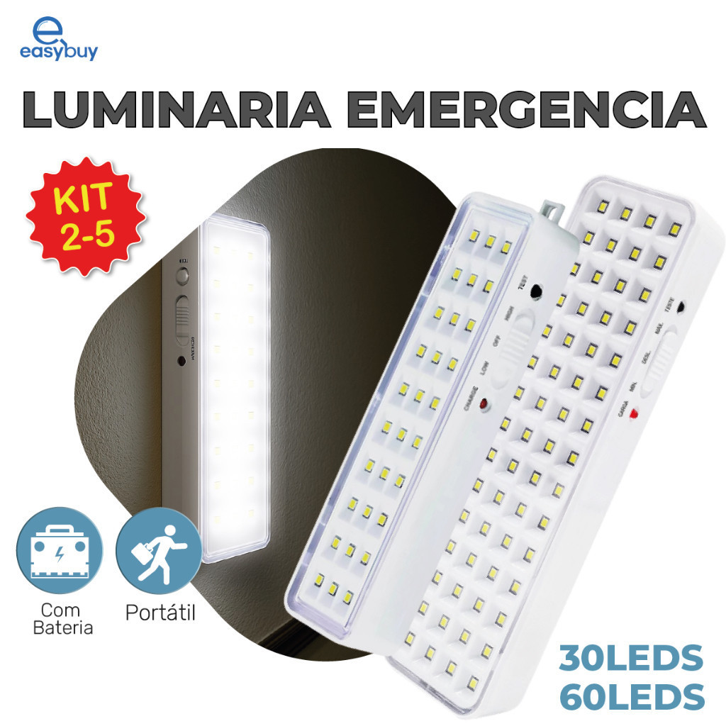 Kit 5 Luminária Emergência Lâmpada 30 ou 60 Leds Recarregável Bivolt Luz Branca Fria