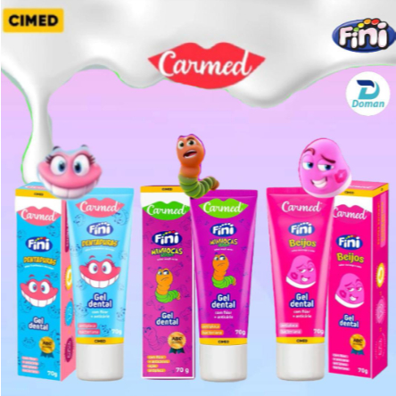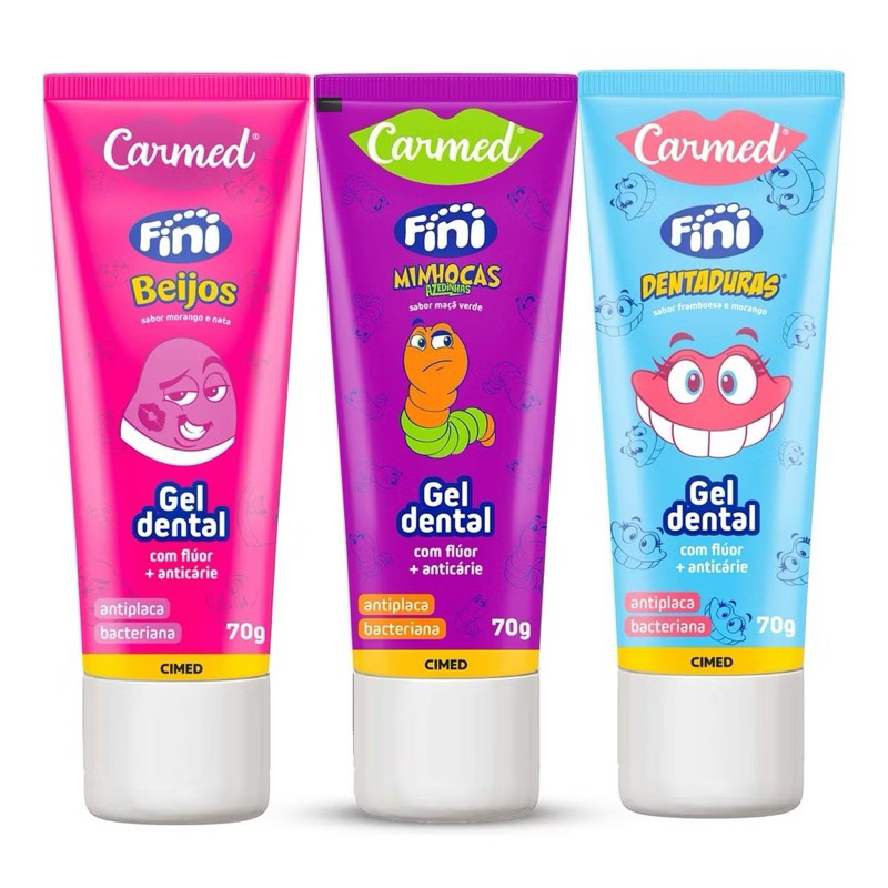 Carmed Gel Dental FINI com Flúor+ anticáries (BEIJOS/ DENTADURAS/MINHOCA) 70G