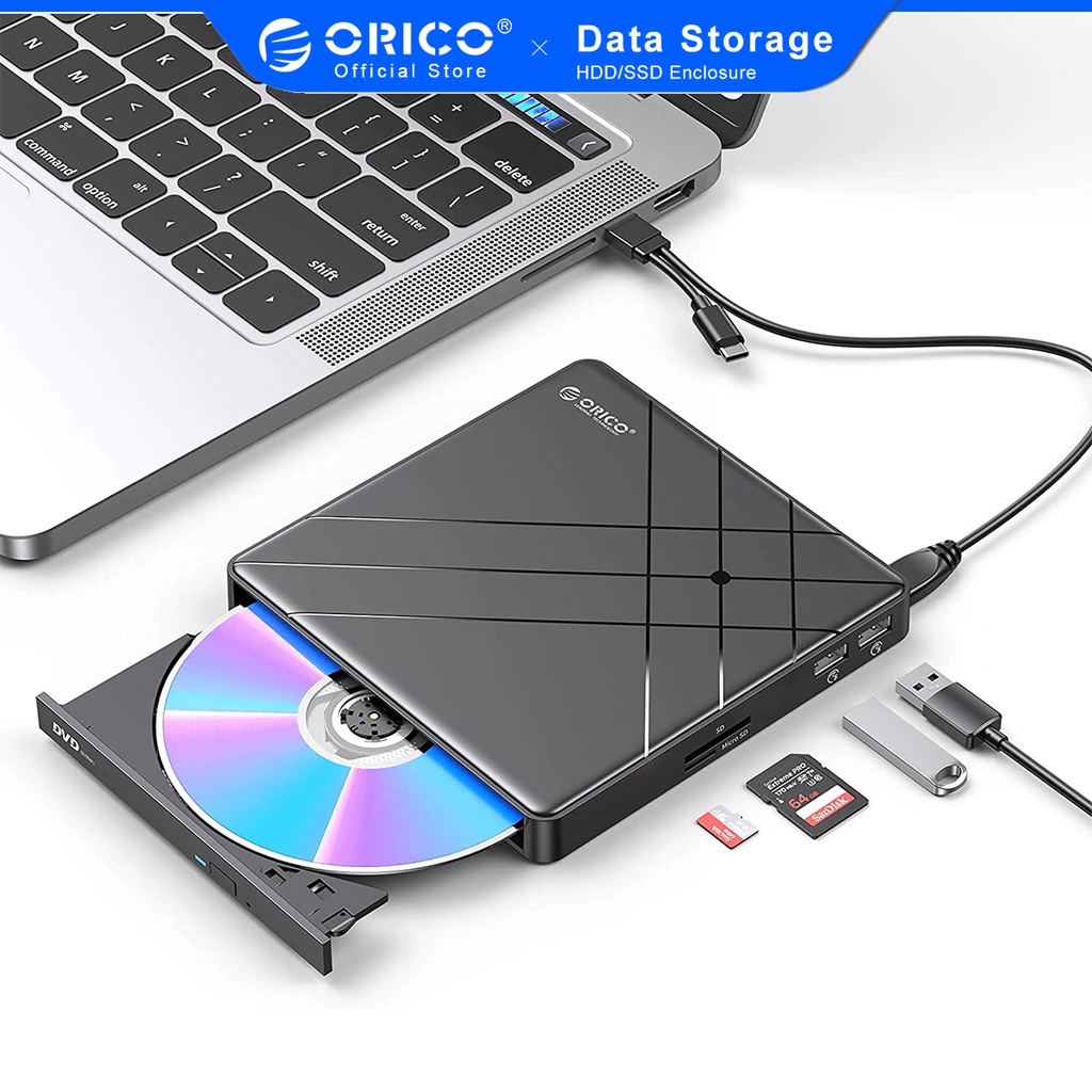 ORICO Gravador De CD Externo De DVD USB 3.0 Tipo C/+/- RW Drive Player Com Portas E TF/SD Slots De Cartão Compatíveis Windows Linux OS Mac