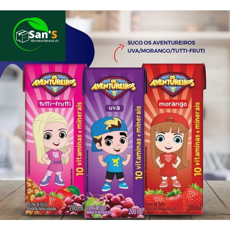3 unidades Suco Luccas Neto Aventureiros 200ml - Uva, Morango, Tutti Frutti