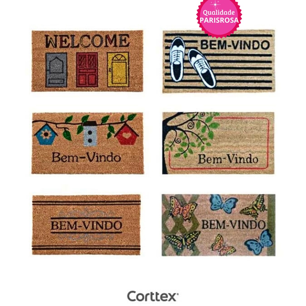 Tapete de Porta Capacho Vários Modelos Bem Vindo Fibra de Coco Tamanho 30cm x 60cm