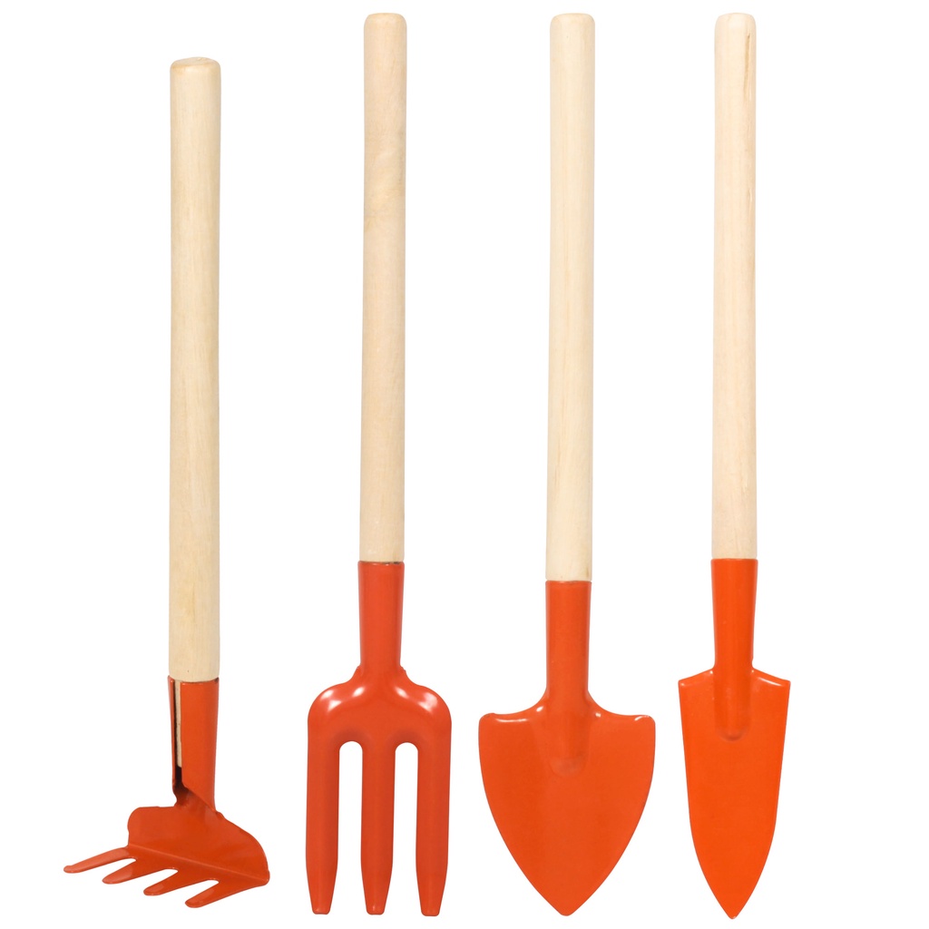 Mini Kit Jardinagem Conjunto Ferramentas 4 Peças Metal Cabo Madeira Jardim