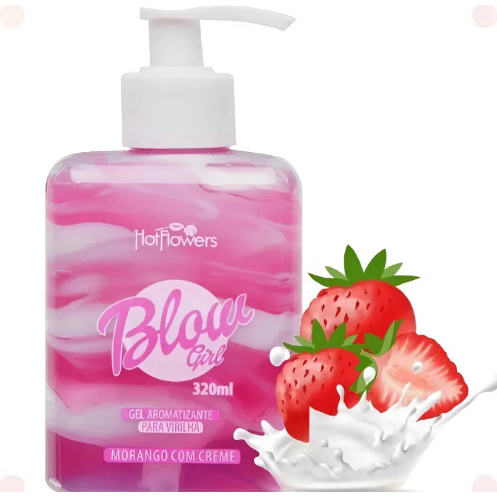 Blow Girl Gel Aromatizante Beijável Para Virilha Morango com Creme 320ml Original Hidratante Corporal