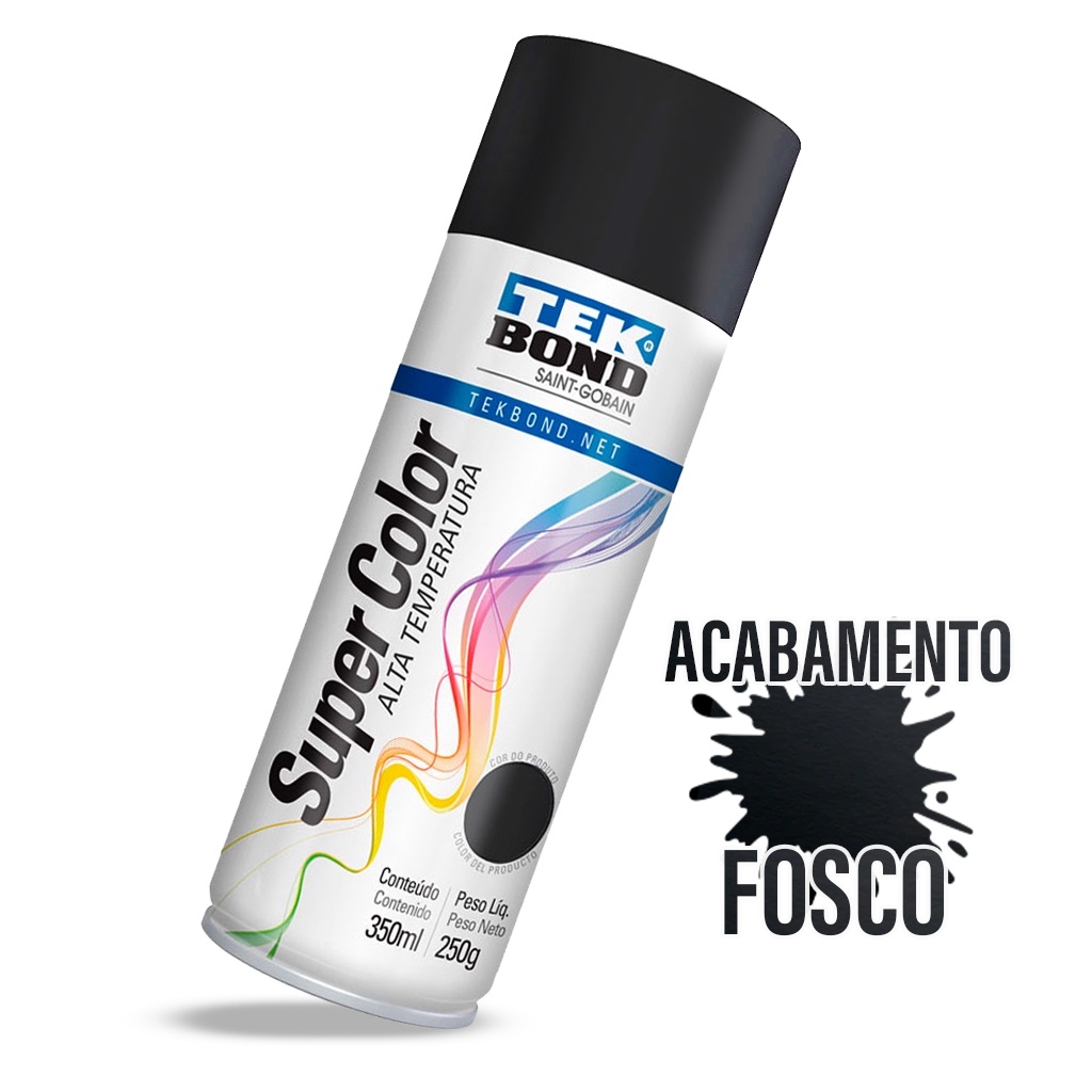Tinta Spray Preto Fosco SuperColor Verniz Uso Geral 350ml Tekbond Aerossol Secagem Rápida Gesso Cerâmica Aerosol