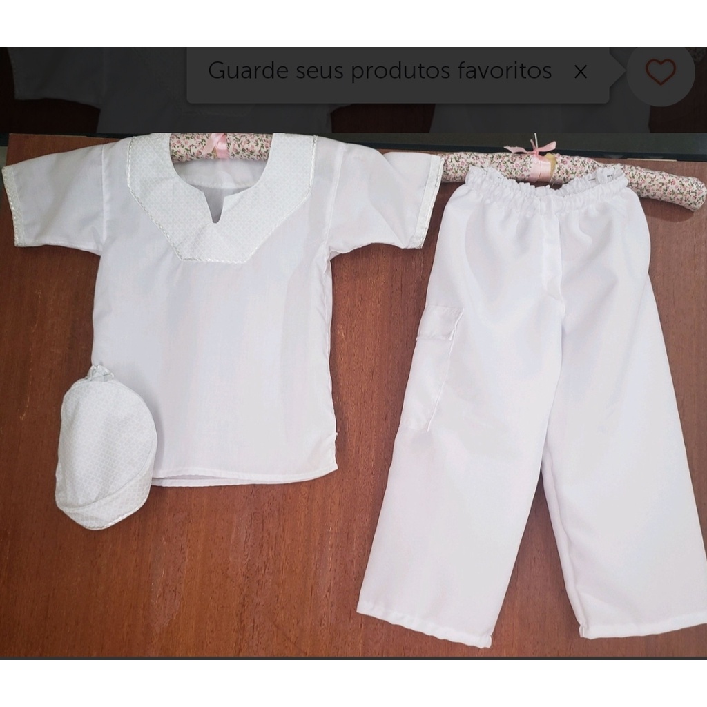 Roupa Umbanda Candomblé Ração Branca 3 Peças Bata, Calça E Pano De Cabeça