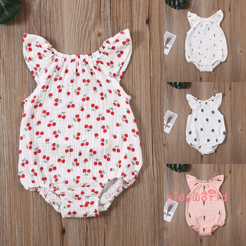 ❥ ∂ - Macacão De Verão Bebê Menina Manga Comprida Bonito Cacto Radish, Cereja E Impressão