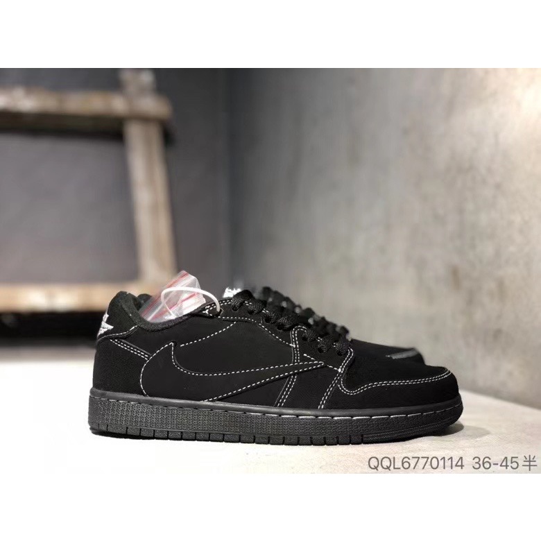 Travis Scott X JD 1 LOW " Dark Mocha " De Cabeça Para Baixo Gancho/Linha Preta E Branca Mesma Anti-Derrapante Desgaste-Sapatos De Basquetebol Resistentes , Tênis Selvagens Casuais
