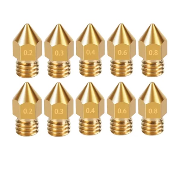 Kit com 10 Bicos Nozzle MK8 1.75mm 0.2 | 0.3 | 0.4 | 0.5 | 0.6 | 0.8 | Impressora 3d Ender 3 / Pro