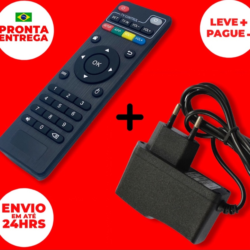 kit Controle Remoto Universal Smart Tv Box E Fonte 5v 2Amp Universal