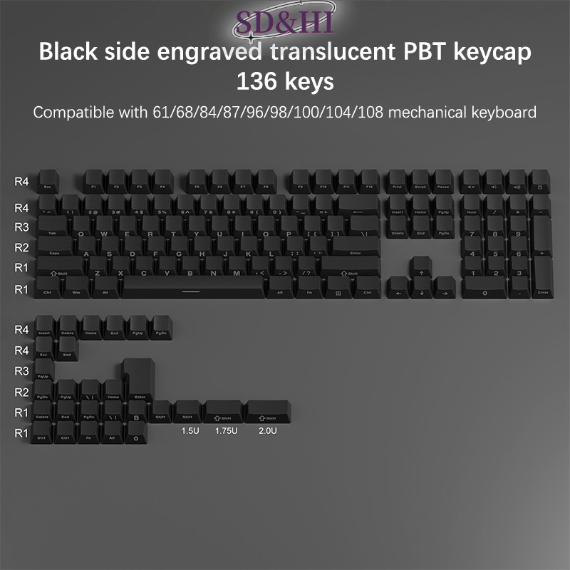 SDHI 136 Chave PBT Lado De Impressão Brilho Th Backlit Keycaps Para Teclado Mecânico MX 61/68/84/87/96/98/100/104/108 (vn)