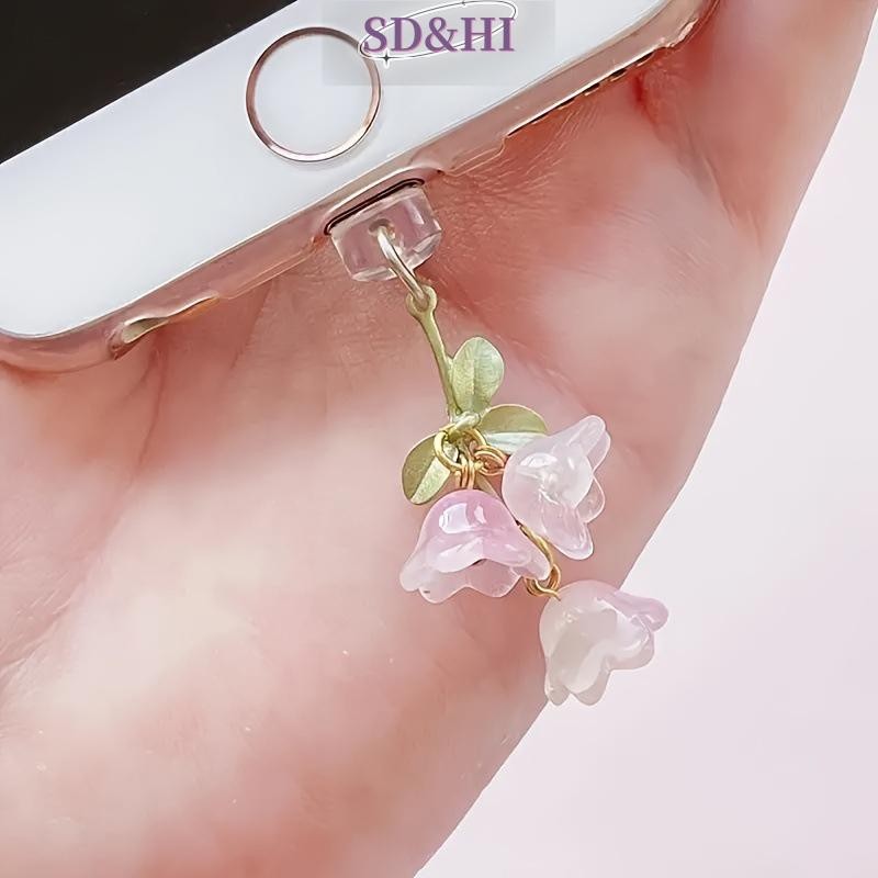 SDHI 1 Peça Para Telefone/Interface Tipo C Fofo Rosa Lírio Do Vale Charme De Flor Folha Verde Plugue De Poeira Acessório