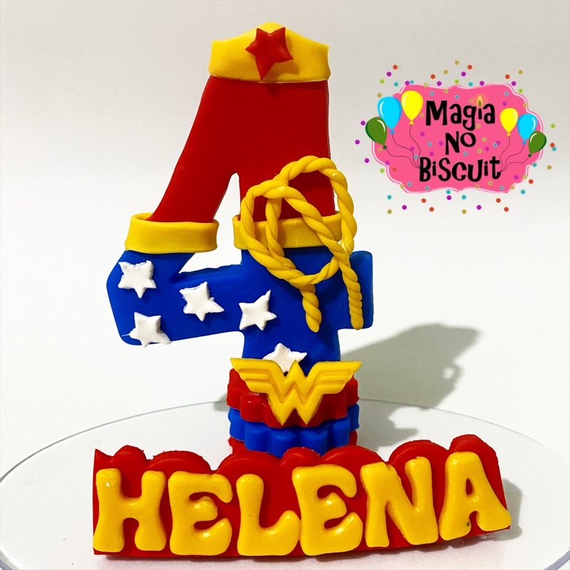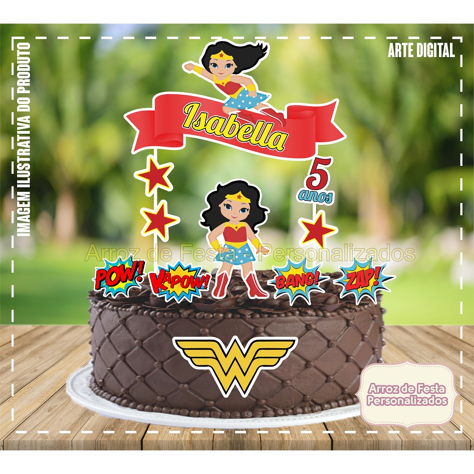 Topo de Bolo Topper de Bolo Personalizado Mulher Maravilha Cute
