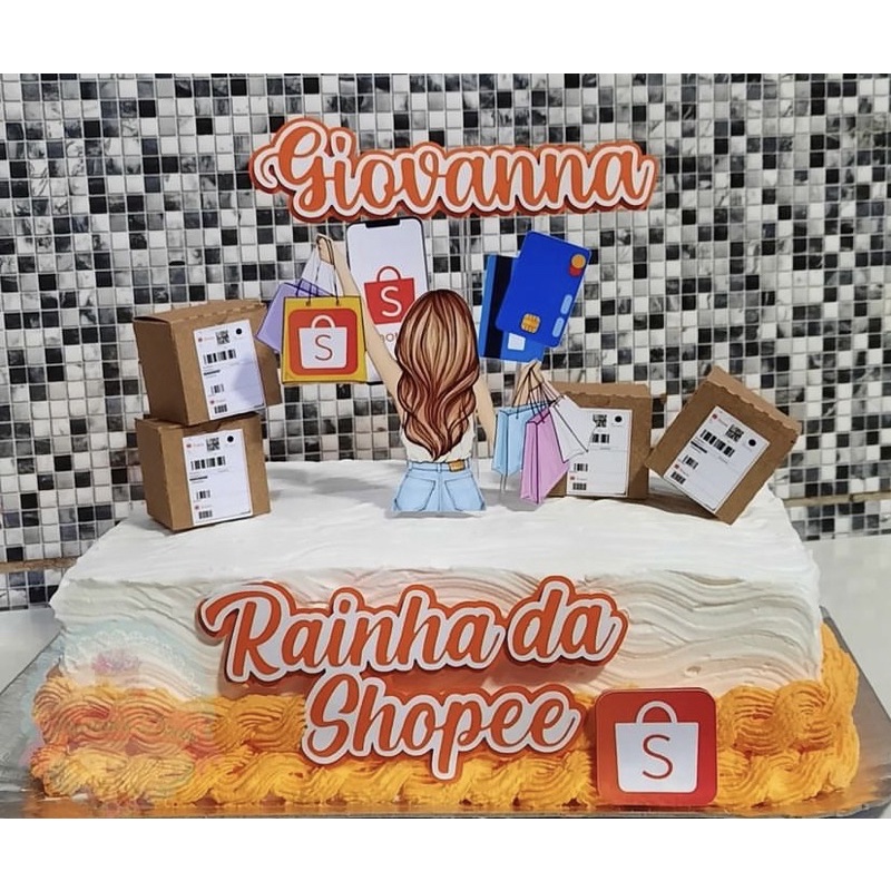 Topo de Bolo - Topper de Bolo Personalizado Aniversário Shopee Nome em Camadas