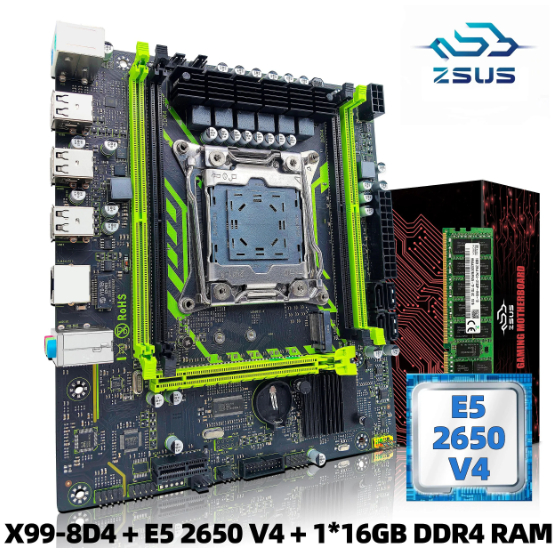 Kit Xeon - Placa Mae X99 ZSUS + XEON 2650 V4 + Memoria RAM 8GB/16GB