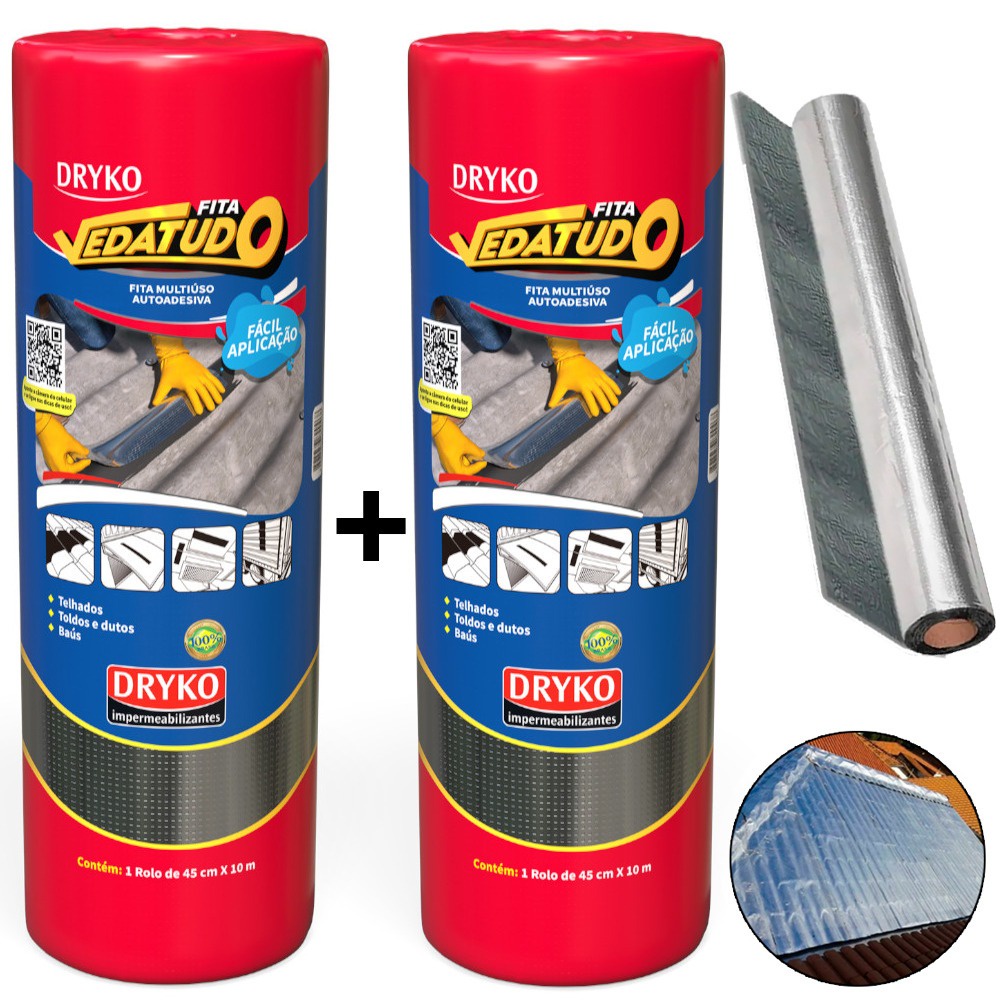 Kit 2 Fitas asfáltica auto adesiva aluminizada multiuso 45 cm x 10 m - Vedatudo