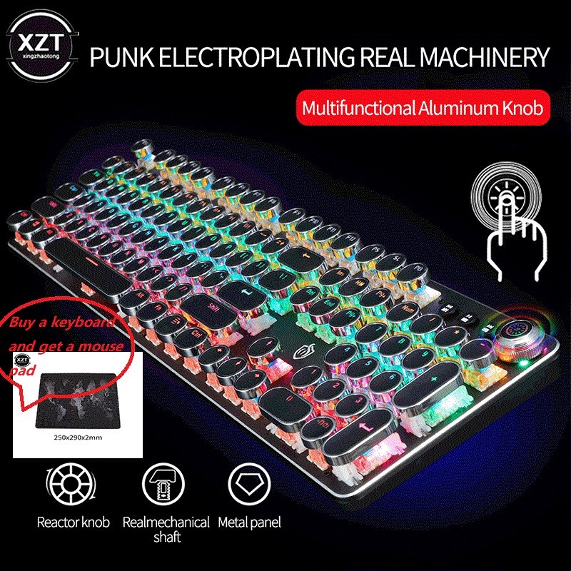 K820 Retro Punk Galvanizado Botão Luminosa Teclado Mecânico Eixo Verde Gaming 104 Teclas Para Enviar Mouse Pad