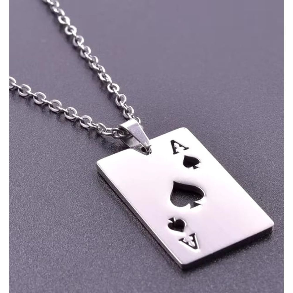Colar de aço inoxidável com pingente cartas de baralho, ás de copas, ás de espadas