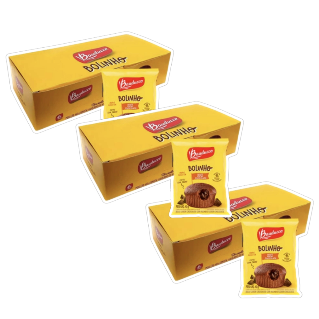 KIT 3 Bolinho Bauducco duplo chocolate display com 16 un de 40g cada