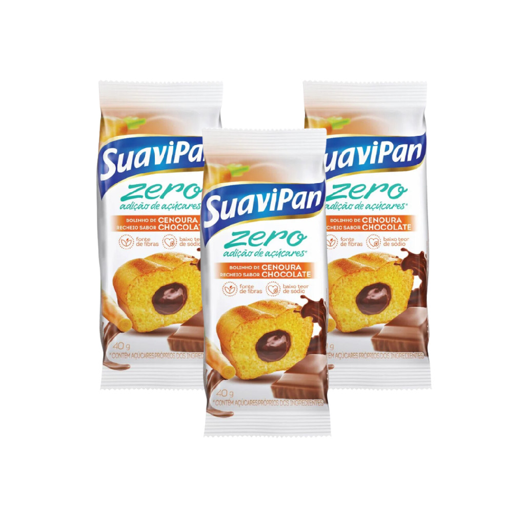 Kit 12un Bolinho Recheado Zero Açucar Cenoura com Chocolate 40g SuaviPan